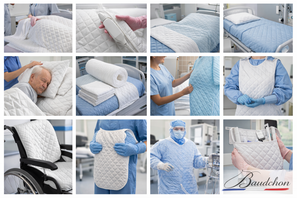 Les solutions d’ouatinage et de matelassage développées par Baudchon s’adressent à des secteurs où la fiabilité textile est critique :